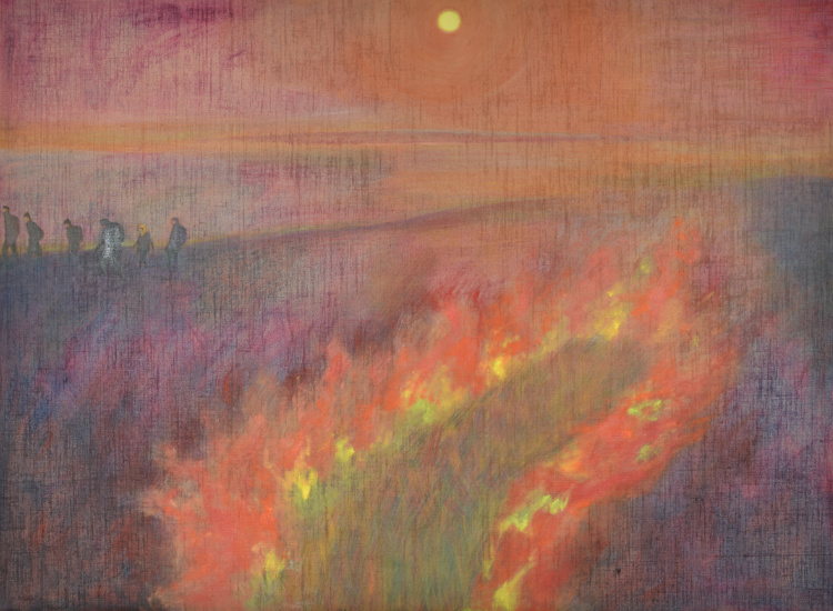 Feuer, 140 x 190 cm, Öl auf Jute, 2025